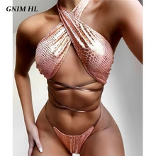 Cheap price Bandage Bikini Mujer 2020 Sexy Shiny Swimwear Women Two Pieces Brazilian Swimsuit Biquini Set Backless Cross Neck Bathing Suit Swimwears Special Order Now! good quality