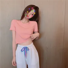 Cheap price kaguster cheap Summer 2020 new two-piece crop tops T-shirt and drawstring leg sweatpants fashion suits Casual O-Neck track suit Women's Sets Special Order Now! good quality