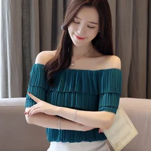 Korean Chiffon Blouses Women Tops Woman Solid Ruffles Blouse Top Plus Size Blusas Mujer De Moda 2020 Womens Slash Neck Blouse XL Blouses