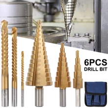 Cheap price 6Pcs HSS Steel Titanium Step Drill Bit Set 4-12/20/32mm Metal Hole Cutter Wood Cone Core Drilling Hole Saw Tool+3,6,8 Saw Drill Drill Bit Special Order Now! good quality